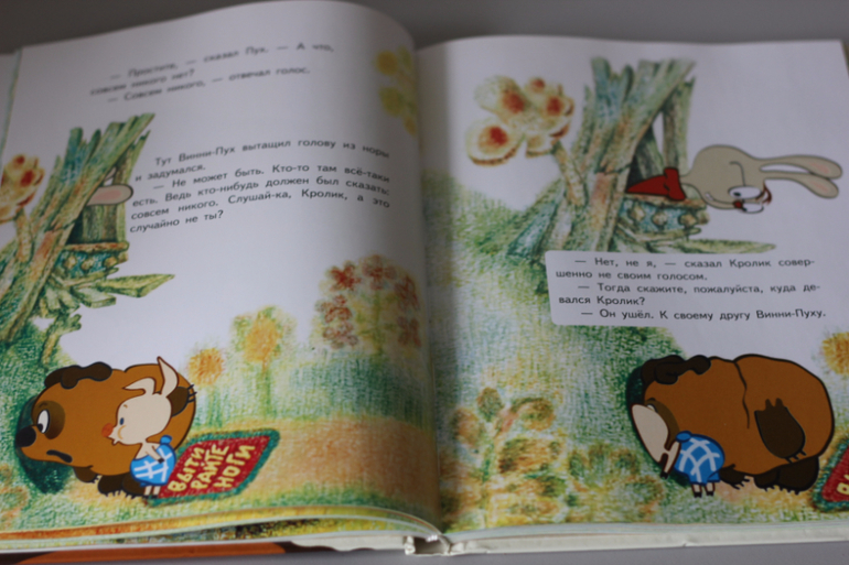 Уже вовсю читаем, очень нравится вторая часть, особенно момент, когда Винни застрял, вылезая из норы.