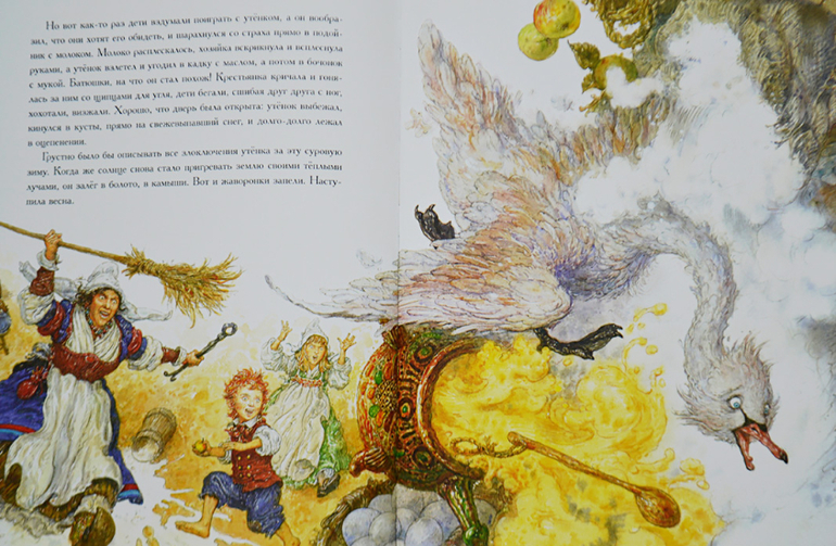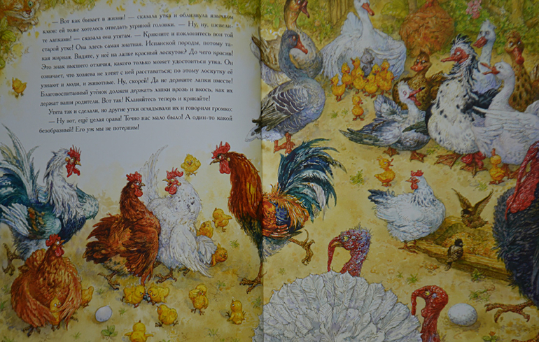 Книга чуть больше формата А4, твердый переплет, мелованная бумага, прекрасное качество печати, иллюстрации на каждом развороте и занимают весь разворот. Крупный и четкий шрифт прекрасно подойдут для тех, кто только начинает читать.