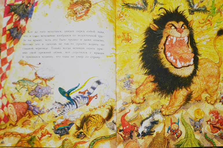 Одна из самых моих любимых сказок детства. Иллюстрации Ломаева как всегда на высоте! Художник сумел отразить в рисунках характеры персонажей сказки - кот у него получился наишикарнейший, самый что ни на есть настоящий хитрец, плут и обманщик с блестящими глазками, маркиз де Карабас нарисован как эдакий простачок-простофиля, король и принцесса вполне себе наивные и доверчивые, а людоед-великан своим видом как и полагается приводит в трепет и ужас.