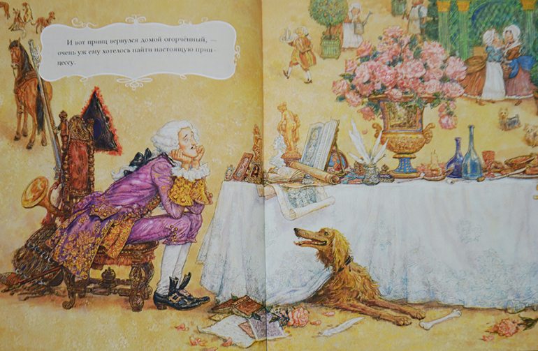 Это одна из немногих сказок из этой серии, которую мы с дочей читаем уже вместе. Много текста на одной странице она у меня не выдерживает, а в этой книге его довольно мало. Мир принцесс мы для себя давно уже открыли и принцесса на горошине от Ломаева заняла в нем достойное место. Ведь она просто великолепна, изящна и самое главное - настоящая.