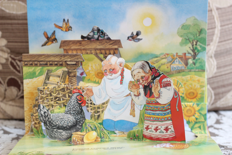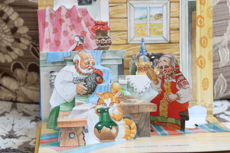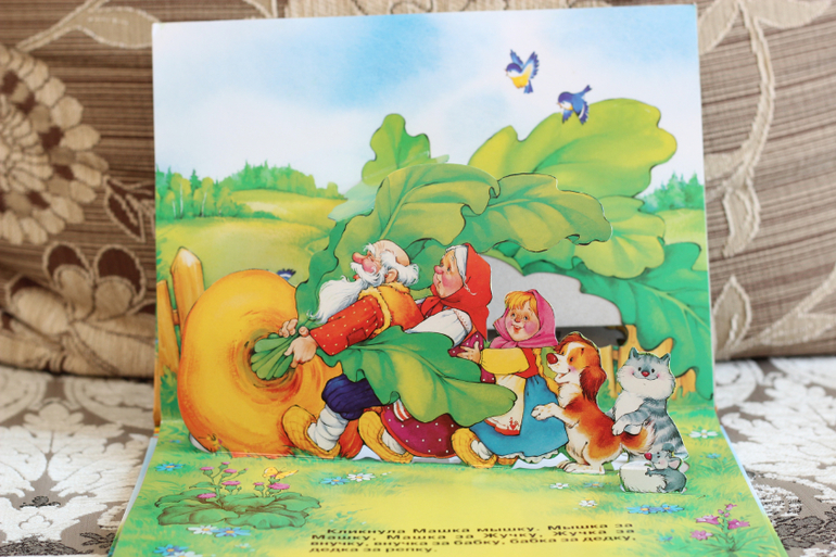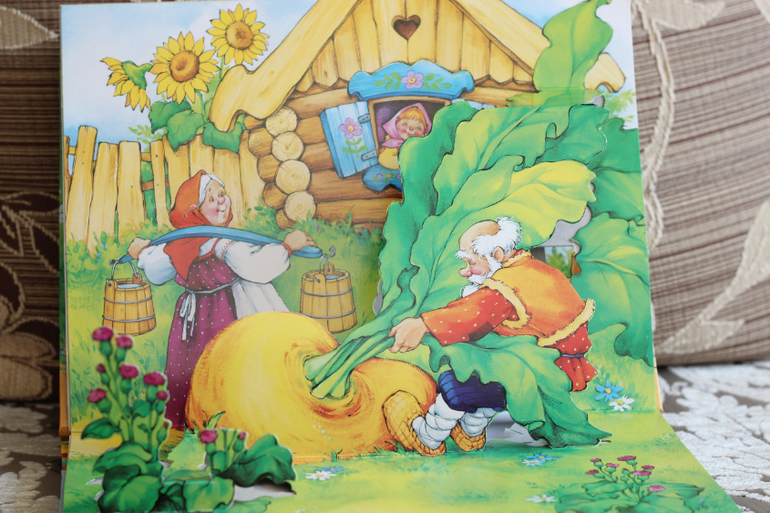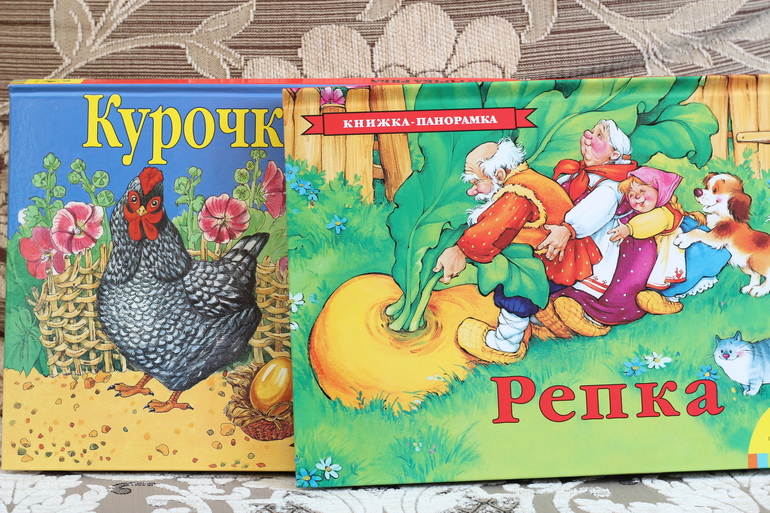 Сейчас ребенок уже привык к тому, что когда ему читают, он спокойно сидит или на коленях у родителей или рядышком и рассматривает картинки, поэтому мы достали книжки-панорамки от Росмэн "Репка" и "Курочка Ряба" и с удовольствием их разглядываем:
