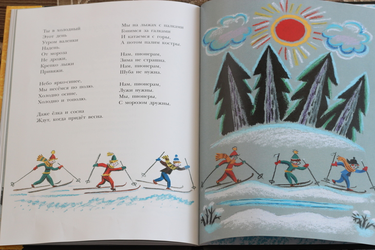 А еще в этом сборнике есть то, что мы начинаем любить всей своей мальчишечьей душой - ПАЛКИ! И ведь разглядел! Тычет в них пальчиком! А может лыжника с зимы помнит!