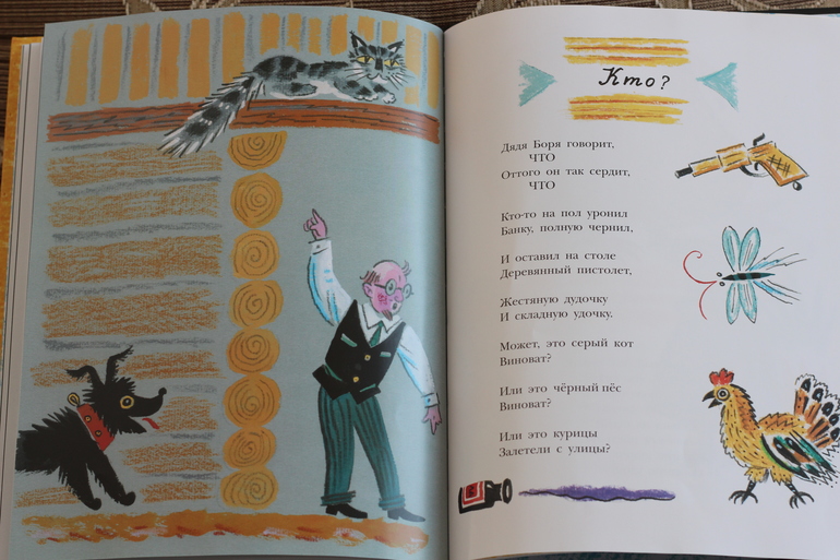 А на стихотворении "Кто?" Димка хихикает. Чего бы понимал! То ли я смешно читаю его, то ли коты с собаками и курицы с индюками нравятся, то ли ритм такой? Читаем и смеемся!