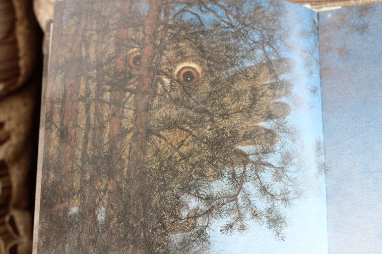 И вот моему восторгу не было предела, когда пару дней назад я её достала и Димка сначала начал пыхтеть, как ёжик, а потом нашёл в ветках филина, обрадовался, начал мне его показывать пальчиком.