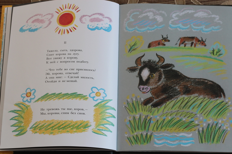После этих книг неожиданным образом у нас пошёл Введенский "Когда я вырасту большой". Я ему и Маршака с Васнецовым, и Чуковского с Сутеевым, и Пушкина с Лаптевым и Рейпольским подсовывала, а ему оказывается корова нужна была: