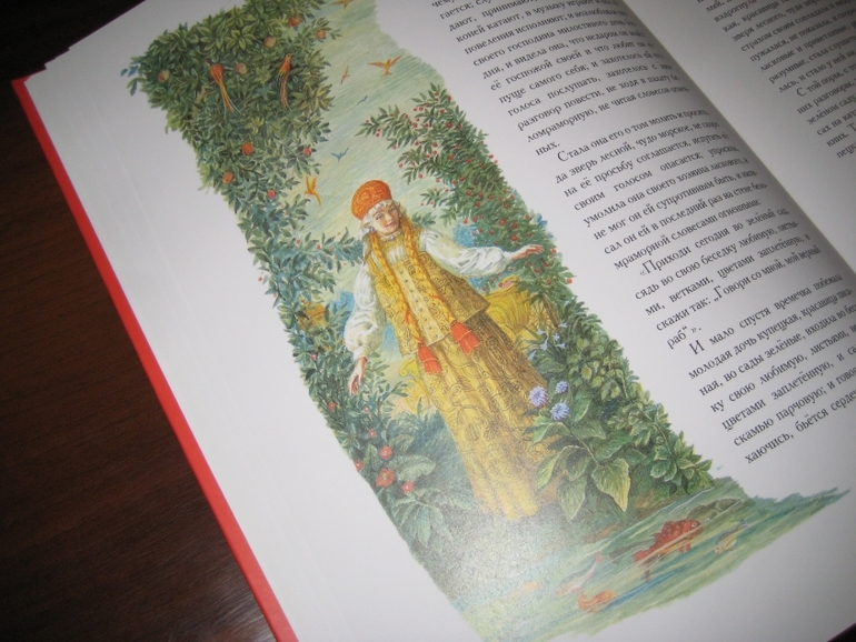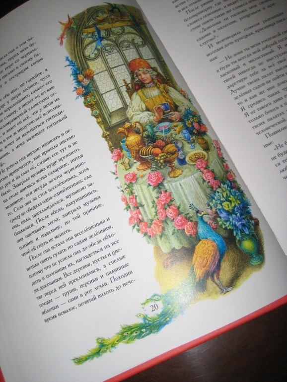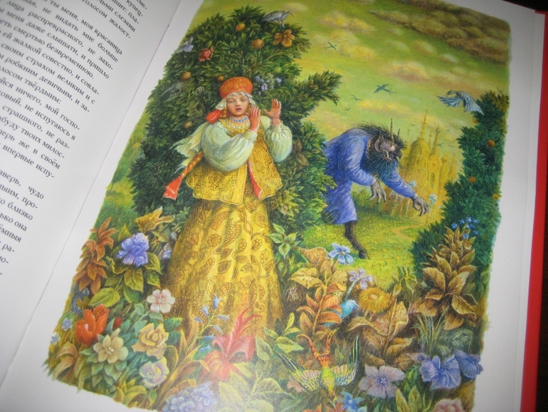 Нарядно, но не чересчур, красиво, но в меру. А между тем изобразительная манера художника удивительно гармонирует с самим русским духом "Аленького цветочка", с переливчатой речью повествователя: