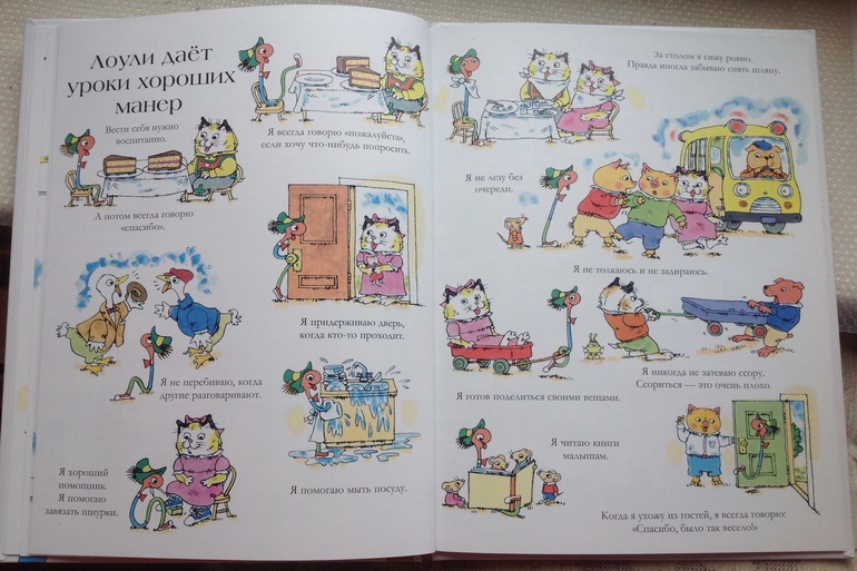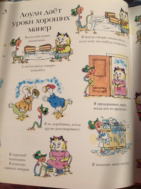 "Лоули дает уроки хороших манер". На этом развороте червячок рассказвает не столько о хороших манерах, сколько о доброте и уважении к окружающим.