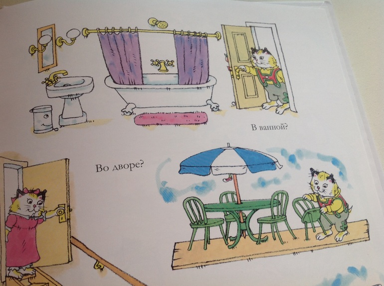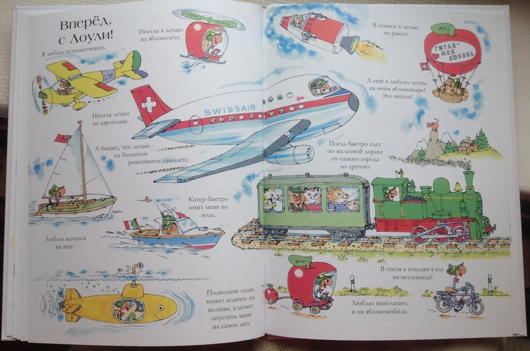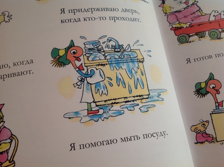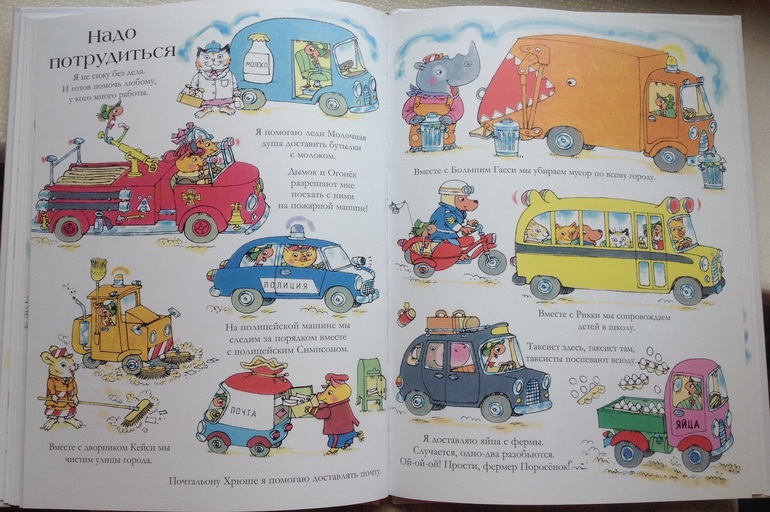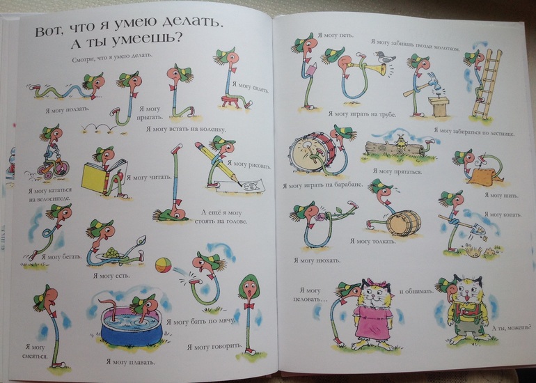Дочке больше всего понравился разворот "Вот, что я умею делать", похожий у нас есть в "Самой лучшей книжке" того же Ричарда Скарри.