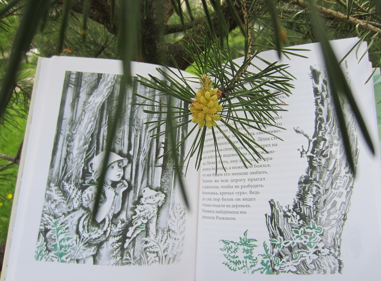 "А Лёша сидел, читал книжку, и оторвать его было совершенно невозможно, он даже не замечал, когда на книжку падала шишка или палка. Просто стряхивал их, и все".