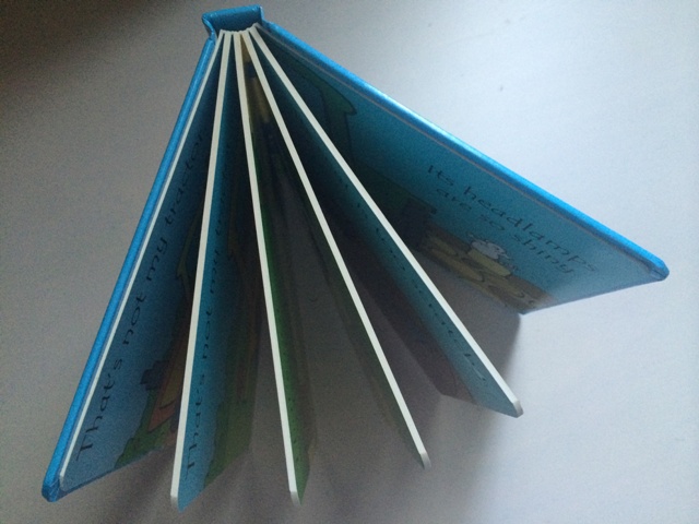 Теперь поподробнее. Построены все книги по одному и тому же принципу, на каждом развороте идет описание почему же это не мой... (трактор, утка, кролик и т.п).... и этот отличающий элемент как раз и является тактильной вставкой. Во время чтения мы всегда трогаем и проговариваем этот элемент. Часто я вижу как сын их самостоятельно "читает": достает с полки, водит пальчиком и что-то там себе бормочет...)) Отмечу также качество, картон просто очень-очень плотный, вы только посмотрите на толщину страничек..