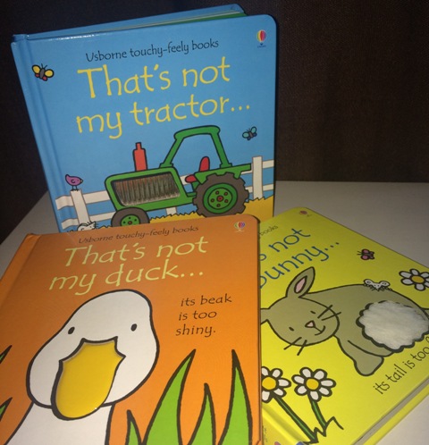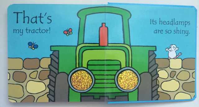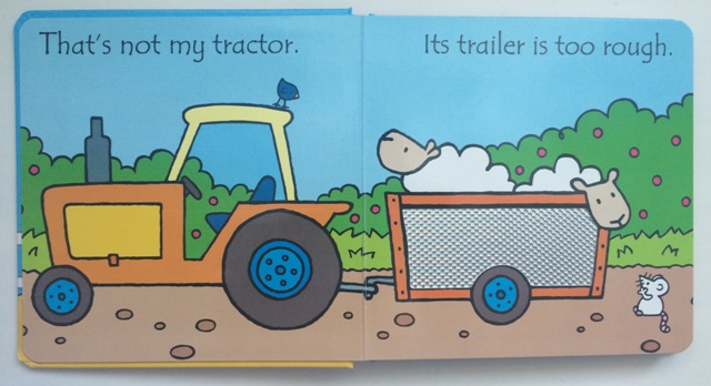 Серия "That's not my..." включает в себя множество книг: про поросенка, барашка, панду, слона, тигра, обезьяну, грузовик, самолет и многие-многие другие, выбирай, как говорится на свой вкус и цвет. Я выбрала три: про утку, кролика и, конечно же, трактор. Могу сказать, что с точки зрения именно тактильности, можно вполне обойтись парочкой книг, т.к. элементы в основном повторяются. Например, мягкая клеенчатая вставка это и клюв у утки, и колеса у трактора, вставки а-ля липучка, фетровые и т.д. также повторяются. Но если покупать их именно с целью пополнения словаря английских слов, то можно и разгуляться))