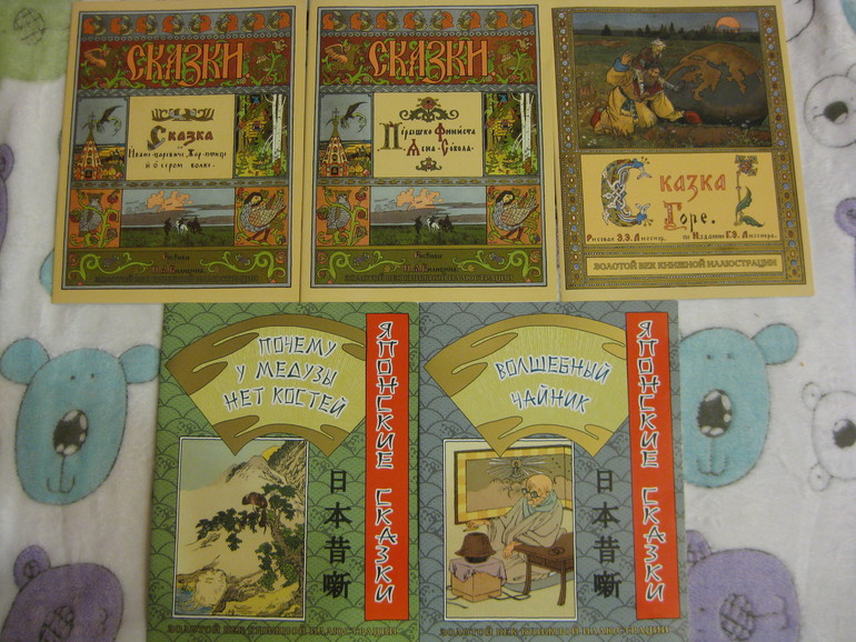 Я же книжный маньяк-шопоголик, да к тому же любитель тоненьких книжек, поэтому скупаю все, что ни попадя))) А попалась мне вот эта серия на Озоне Ну что сказать, листы плотные, формат большой (огромный даже) рисунки неплохие, но попадаются опечатки, тексты классические, но даже взрослые что ли, мне нравятся сказки со старыми словами, заковыристыми оборотами, но тут текст показался сложным и непривычным. Это что касается верхних трех сказок, а вот Японские сказки советую - интересные, красивые, опечатки не помню были или нет.