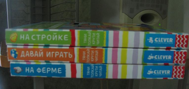для самых маленькихХотелось бы рассказать о наших книгах из серии «Тяни, толкай, крути, читай».Эти книги появились у нас когда ребенку был год и 1 месяц, в этом возрасте он не любил слушать мое чтение и вообще совместное с мамой разглядывание и беседы, но любил сам листать книги. Вот поэтому я искала нечто интересное для самостоятельного "чтения". Так у нас и появились три книги из серии, от издательства Клевер.