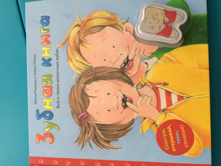Мне она ооочень понравилась, качество супер, подача информации как для малышей так и для деток постарше - отличная. В книге множество окошек, зеркальце, зубик на ниточке, милые иллюстрации и маленькая коробочка, для хранения молочных зубиков. В самом начале есть два пробничка зубной пасты детской.