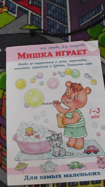 Ну и у нас вся серия развивалок про Мишку, крупные простые рисунки, много текста для пояснения родителям, наводящим вопросам ребенку и т.д.