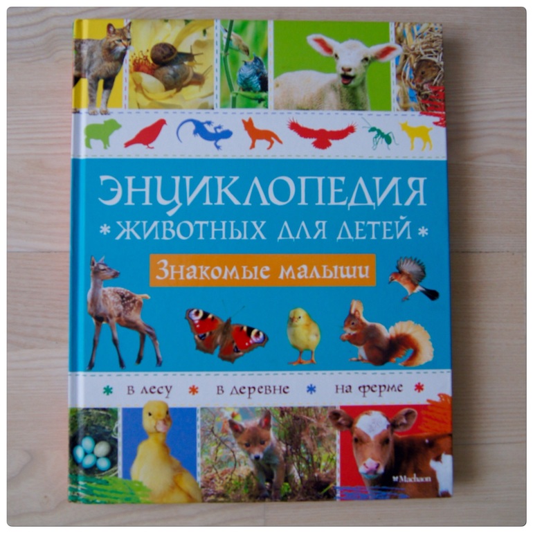 Достаточно интересный вариант энциклопедии о животных: на каждом развороте можно узнать много нового о зверюшках и их детках. Эта книга рассказывает о жителях леса, деревни и фермы, а есть еще и вторая энциклопедия из этой серии, там речь идет об обитателях саванны, моря и ледников.