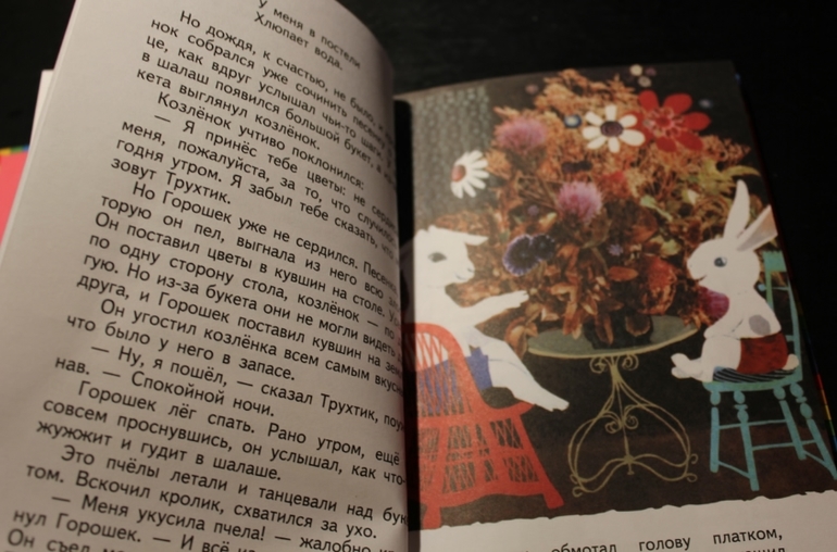 "Чужак на дворе" - у меня еще в старом переводе старого издания от издательства Кладезь (не слышали о таком? я тоже впервые). Сначала мы посмотрели мультик, и смеялись так, что стены тряслись. После мультика пошла, достала книгу и села читать. Больше всего я ценю, когда Яна мне пересказывает. Во-первых, это ужасно полезно. Критерий готовности к школе, развитие речи и прочие вкусняшки. А во-вторых, это ужасно интересно, слушать ,видеть, что именно твой ребенок выделил из книги, какие моменты ему показались самыми смешными (записка Финдуса), ну и в-третьих, это очень сильное психологическое оружие точечного поражения: когда мой муж видит, как Яна взахлеб пересказывает любимые книги, он всегда бурчит, что, мол, может, и не зря целое состояние потратили на книжки.