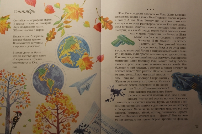 Здесь есть все те стихи, что сейчас разбивают на отдельные книги: и рабочая азбука, и баллада о маленьком буксире, и кто открыл Америку, и помимо этого еще много всего. Эта книга пример того, как на 44 страницах можно разместить целое богатство ,если ,конечно, захотеть. Иллюстрации Игоря Ганзенко очень органично вплетаются в стихотворения, да, это не художественные альбомы Олейникова .но рассматривать приятно, и даже более чем.