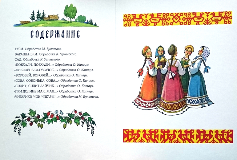 Так как в книге всего одна потешка, представлен ее наиболее развернутый и полный вариант