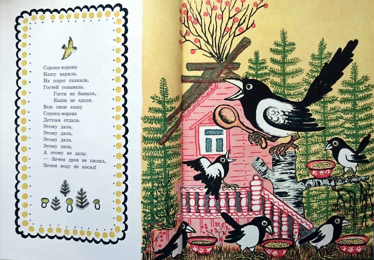 Одна из самых известных потешек, о том как мама-сорока воспитывала своих пятерых деток