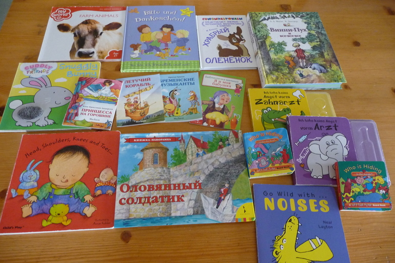 Первая порция - книги для самых маленьких, с минимальным количеством текста.
