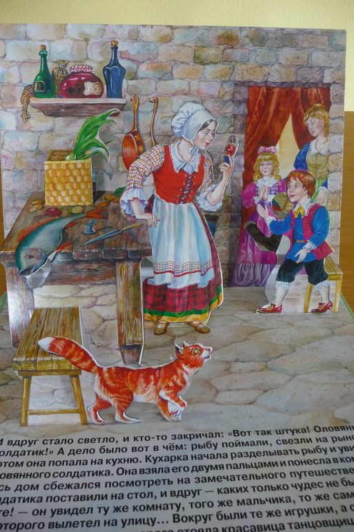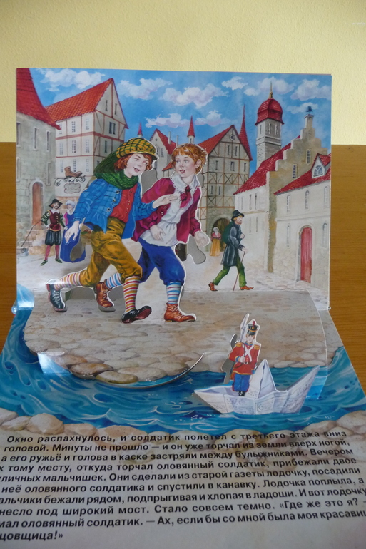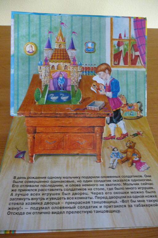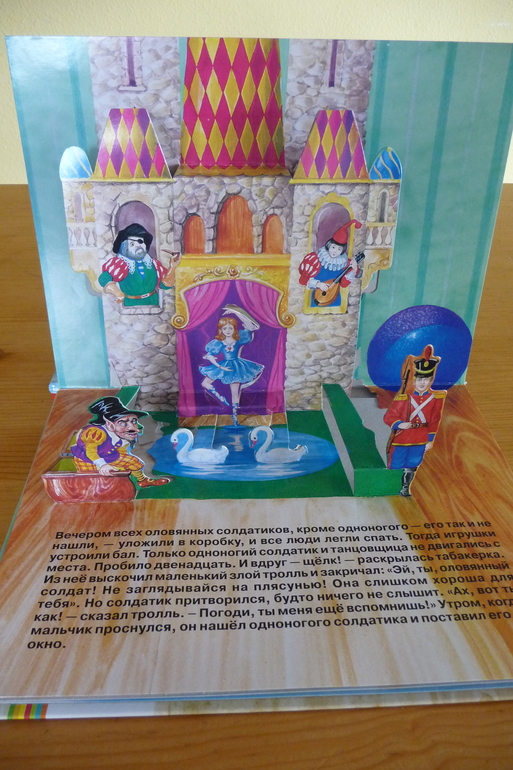 "Оловянный солдатик" - вторая книга Андерсена, которую мы прочли. У меня в детстве было несколько книжек-панораммок. Вспоминаю, как их любила и ещё не умея читать, рассматривала. Решила порадовать Эву и купила две книжечки на пробу. Были и другие книжки из этой серии, но вот иллюстрации оставляют желать лучшего.