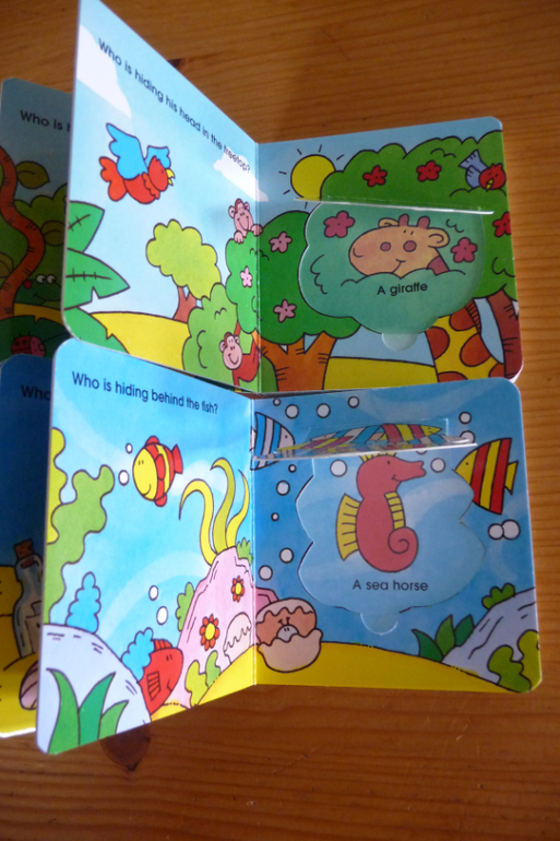 Морская тематика для нас была новой. Но с такой книжечкой нам было весело узнавать новые слова. Да, именно слова, тк основной текст - это одно предложение (вопрос), которое повторяется на каждой странице. А ответ на вопрос - это уже то, что спряталось за окошком. Книжечки малюсенькие, удобно приносить сразу обе маме с утра прямо в кровать))) А мама не против)