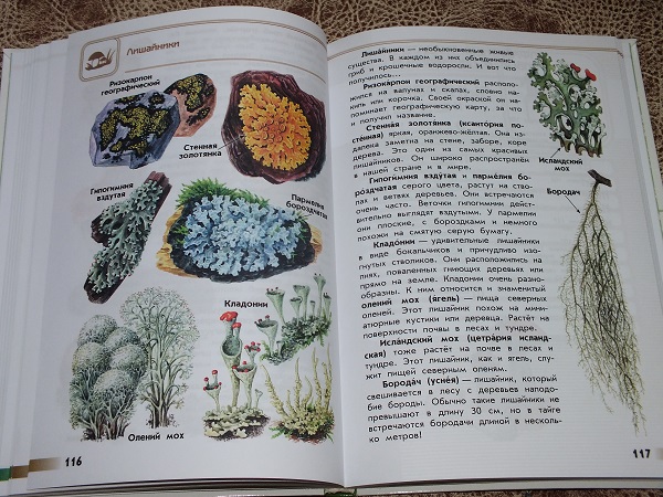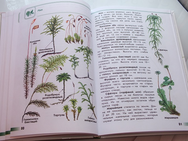 В-третьих, помимо растений (которых предостаточно - от мхов до деревьев) есть куча другой полезной информации. Это - камни, птицы (от правдоподобных иллюстраций в восторге!), животные, грибы, звезды.