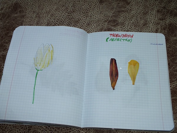 Вначале мы насобирали огромное множество растений, листиков и цветов. Рвали их везде, где только ходили. Иногда даже спорили: есть ли в нашей коллекции уже такой или нет