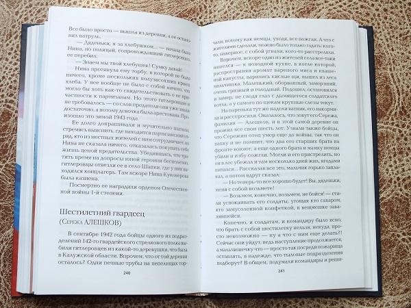 Все эти истории подвигов юных героев написаны простым, понятным языком. Их можно читать детям, можно пересказывать, можно дать книгу для самостоятельного чтения. Шрифт не сильно крупный, но и не мелкий. Страницы белоснежные. В середине есть 3 разворота с цветными вставками.
