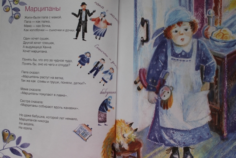 Я так много пишу про иллюстрации, как будто стихи нехороши и мне нечего сказать про них. И хотя я знаю многих, кто может купить книгу исключительно из-за талантливого оформления, просто в качестве художественного альбома (я тоже могу уже), здесь слово и рисунок переплетаются в одно целое, создавая целый мир, вырисовывая нам городок, небольшой, но живой, наполненный смехом и спорами, голосами детей и сплетнями соседок, небогатый, но дружный.