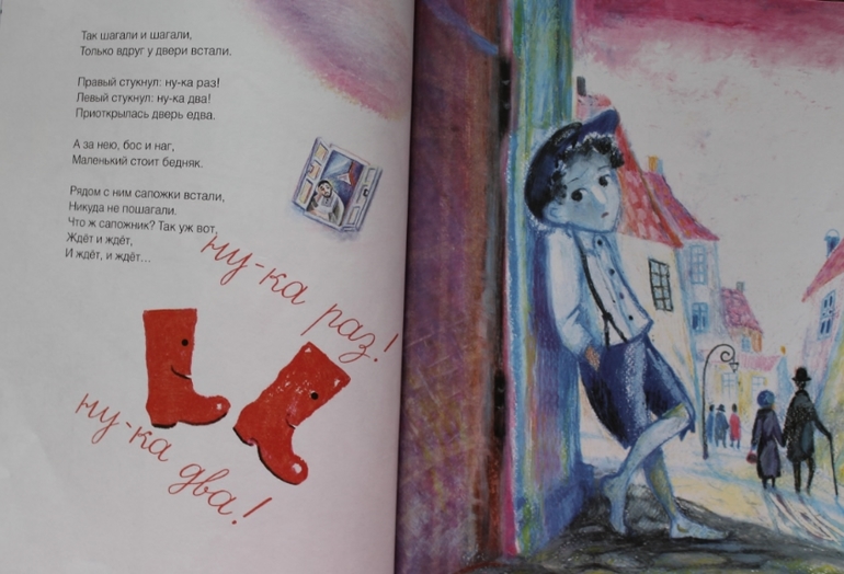 стихиДавным-давно, когда я еще не знала, как правильно искать детские книжки, я покупала их кощунственным образом. На сайте магазина выбирала нужную мне категорию: стихи, например, и о ужас, ставила сортировку по цене. Среди первых десяти страниц всеведущего и дешевого профпресса мне попалась однажды жемчужина. Книга Кати Молдавской (а именно так я прочитала имя писательницы) "Башмачки". Разворотов не было, обложка на увеличивалась, аннотация хвалебная, дети на обложке явно не компьютерные, цена невысокая. Я решила брать.