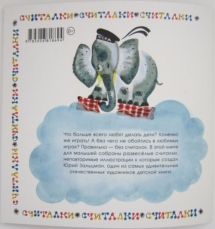 Конечно, в моём детстве не обходилось без считалок. Любая игра начиналась с неё. Могли считаться и не один раз! А иногда просто хвастались друг перед другом знанием считалок. Но как же много стихотворений-считалок были для меня новыми! Я знакомых встретила всего лишь 5! А сколько юмора в рисунках Юрия Зальцмана!
