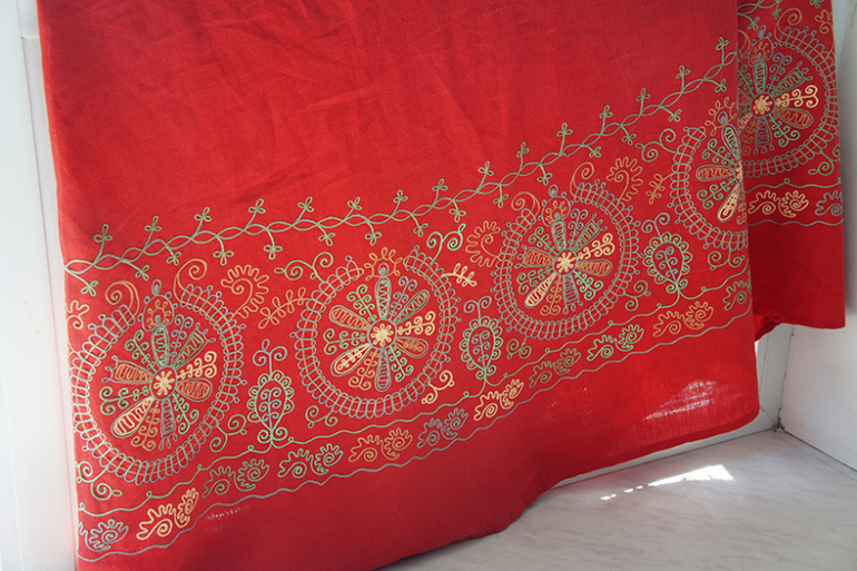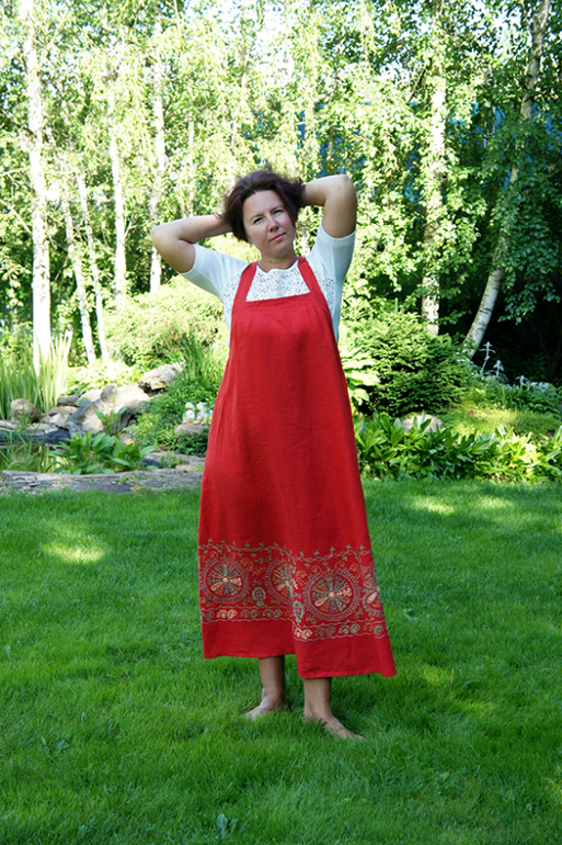 А узор то на сарафане не одинаковый, вокруг круга годового разные полевые работы вышиты.