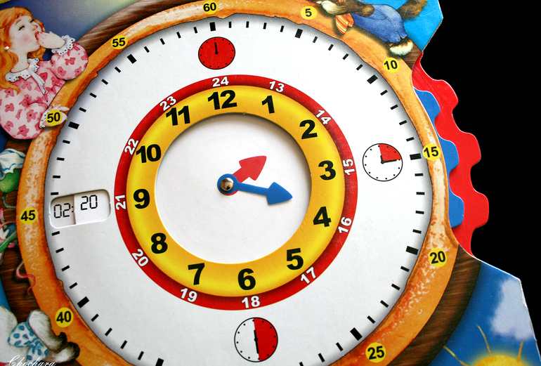 Всё, как положено - крутишь шестерёнки, и стрелки часов бегают по кругу.