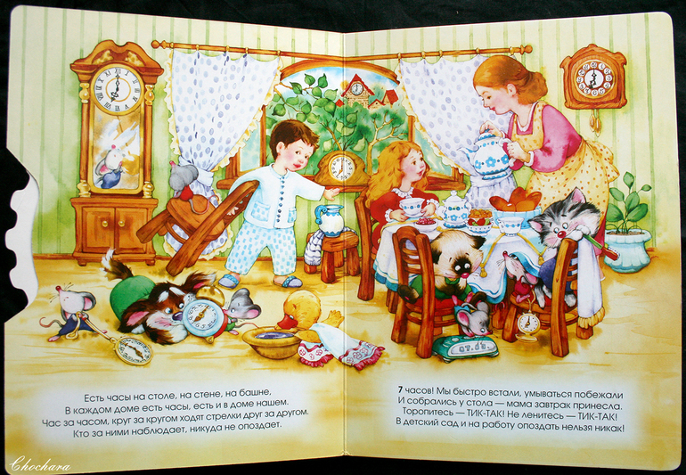 Зная по опыту, что стихи Екатерины Каргановой дочка очень любит, купила ей вот такую картонную книгу с "настоящим" часовым механизмом на обложке;)