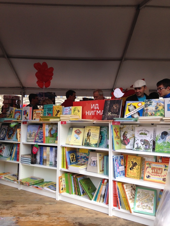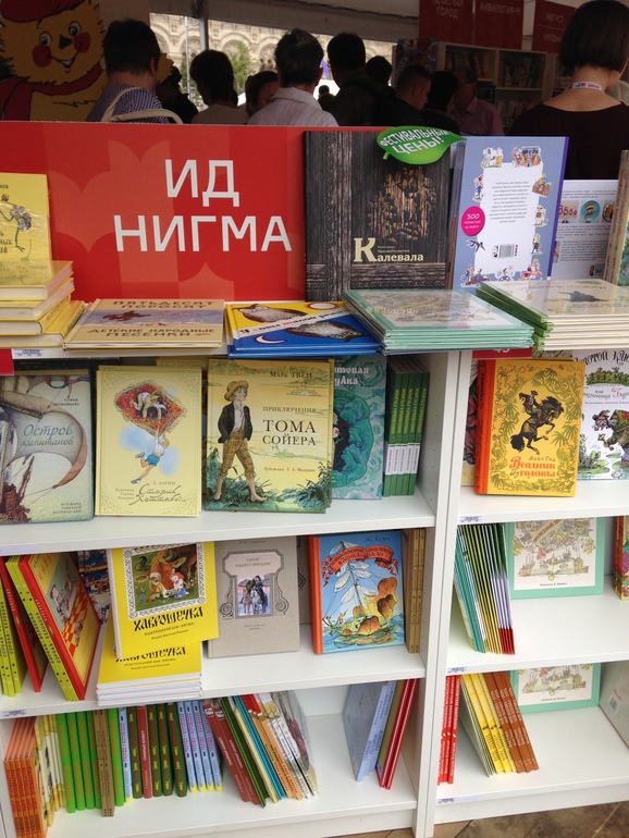 Когда я спросила про "Муфту" у женщины рядом со стендом "Нигмы", она не сказала, что эта книга есть в магазине "Москва". В нем, кстати, народу прилично, т.к. продаются детские книги практически всех издательств.
