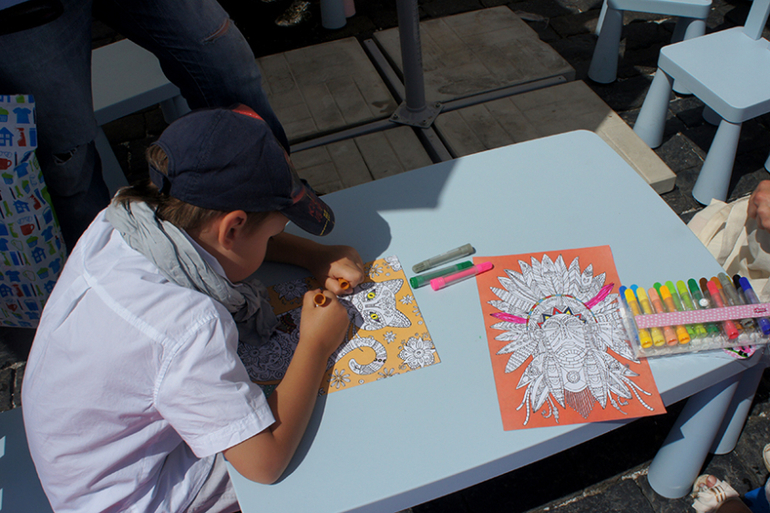 Практически весь день (а мы пробыли там с 12-18 часов), раздавали всем желающим вот такие раскраски.