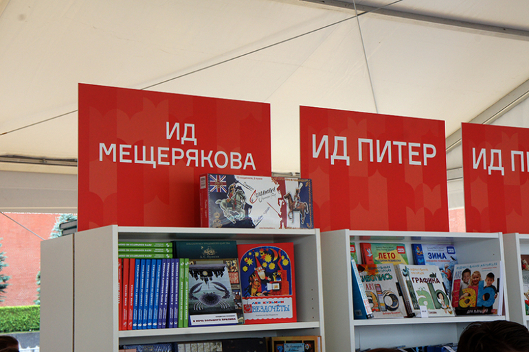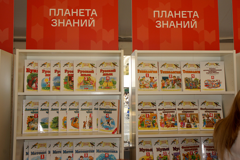 У "Планеты знаний" два стенда и пять книг по ним размазанные мало книг.