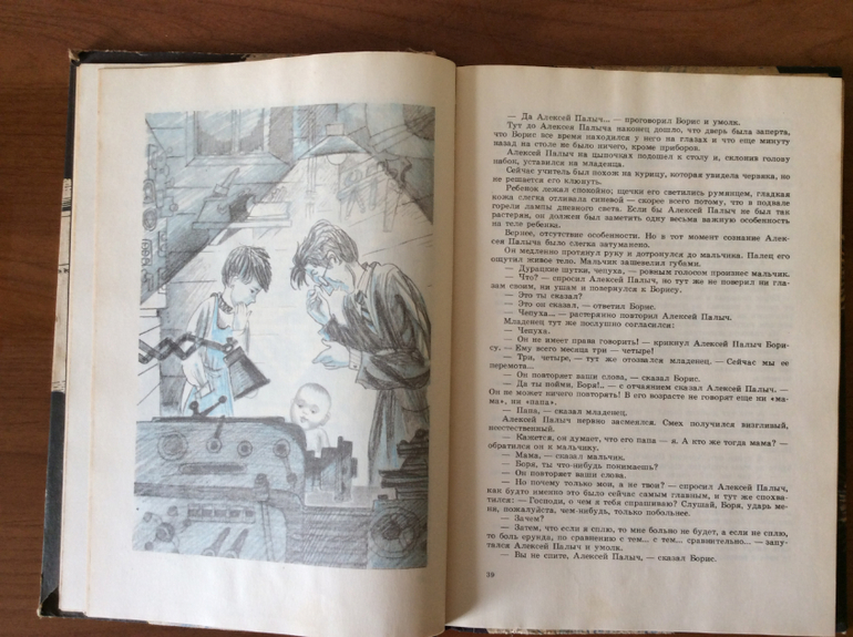 Одно из моих потрясений, классе эдак в третьем. Мальчик Толик, лентяй и врун, убегая от милиционера попадает в странное место где мальчик с голубыми глазами считает груды спичечных коробок. Толик берёт один из коробков и напуганный пришедшим в бешенство мальчиком убегает. Как оказывается спички из этого коробка могут исполнять желания, достаточно только сломать спичку. В детстве я заразил этой книжкой весь класс. Мы долго обсуждали, как бы распорядились спичками доведись нам найти такой коробок, спорили и играли на тему. Я даже не знаю, кто зачитал мою книжку - очень уж она активно ходила по рукам. Поэтому показываю современное издание, которое я купил сыновьям, а у меня была такая, с иллюстрациями Калаушина.
