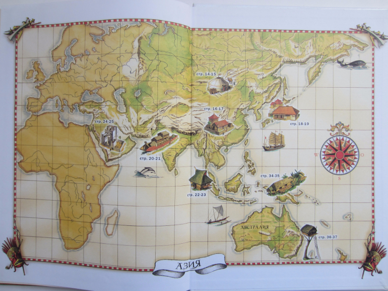 Здесь есть карта!!! Как же я мечтаю о большой карте, на которой бы были изображены дома разных народов. В этой энциклопедии немножечко, но и это уже чудесно!