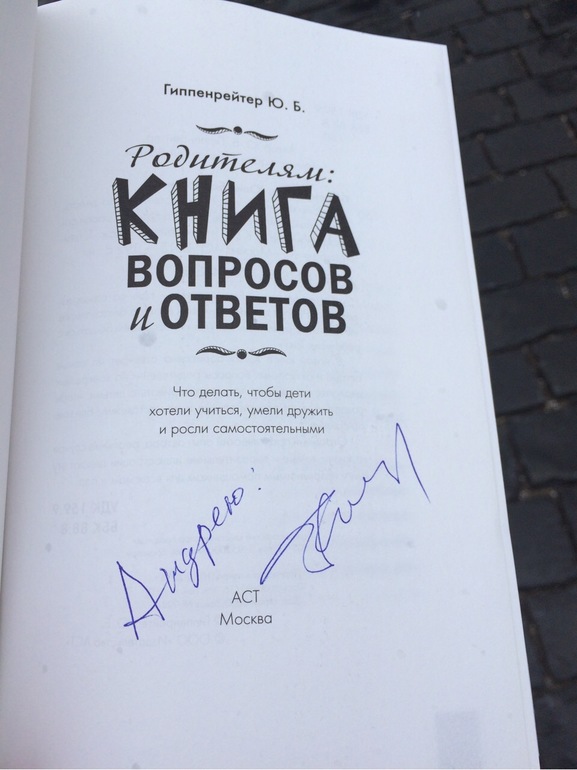 Зато я в субботу попала на прекраснейшую лекцию Юлии Борисовны Гиппенрейтер. Она ТАКОЙ специалист!!! После ее выступления, родители задавали вопросы, выходили прямо с детьми и она их конфликтные ситуации разруливала на "Раз, два!". Было очень ветрено в том месте, но я не могла оторваться от ее рассказов. Огромного ей здоровья и надеюсь у меня будет возможность еще раз ее послушать.