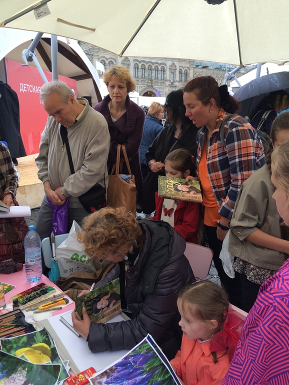 Детки рисовали, Ольга Ромуальдовна им помогала советами, люди подходили благодарили ее за чудесные книги, просили автографы и погода стала налаживаться. К вечеру вообще солнышко выглянуло :)