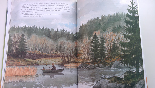 В иллюстрациях особое настроение, оно хорошо передано, но именно, как я в детстве говорила "Холодно. Дождь. Осень". Все тлен! И все же, как же прекрасен разворот с лодкой.
