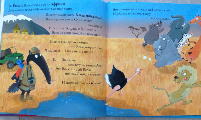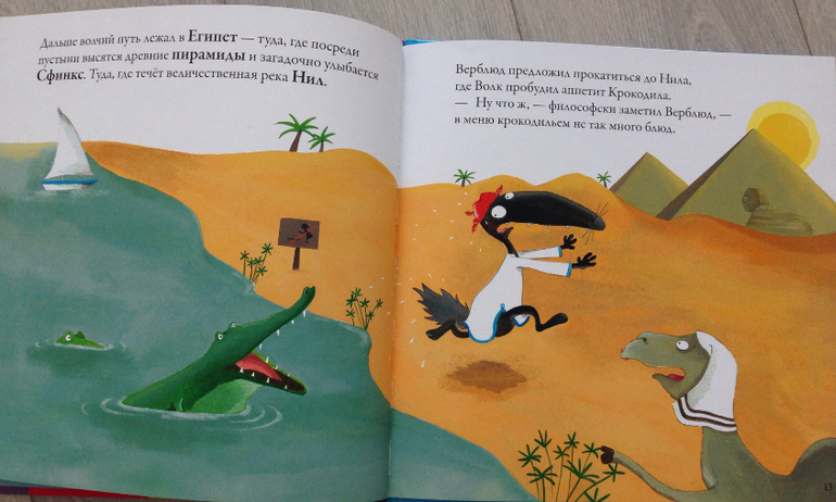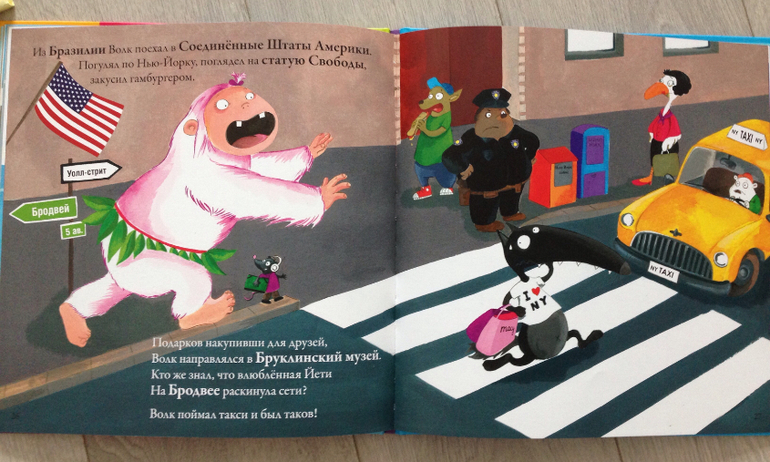 Следующий наш хит оказался тоже книгой-картинкой "Волк, который путешествовал по свету". Читали бесчисленное множество раз) видно, сыну надоела серьезная детская литература, потянуло на незатейливые красочные истории. Эта история про Волка, который зимой заскучал дома и решил отправиться в путешествие по миру. В книге проза перемешивается со стихами, написана легко, с юмором. Кратко описывается одна достопримечательность того или иного места, например, Китай -Великая китайская стена, Рио-де-Жанейро -карнавал и т.д. Особенно, сыну понравилась влюбленная в волка Йети, которая преследовала его, он искал ее на всех страницах) посмотрела другие книги про Волка из этой серии, не понравились, больше покупать не буду.