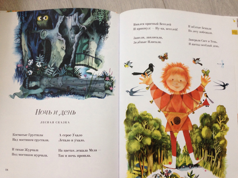 и в этом. На сегодня это любимый сборник стихотворений, читаем по три раза за раз. Я уже захлопываю книгу) при том, что и младший сын, у которого проснулся не только пищевой интерес к книгам в этом месяце, тоже несет ее мне читать, сидит и слушает)