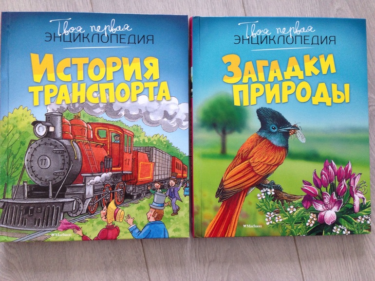 Следующие 2 энциклопедии от Махаона. Планировала почитать и рассмотреть только одну - "Историю транспорта", но сын и вторую достал) хотя "Загадки природы", я считаю на возраст постарше. Энциклопедии у нас пользуются большим спросом, сын регулярно просматривает имеющиеся у нас и ЗОП, и Волшебные створки от Робинс, и махаоновские.