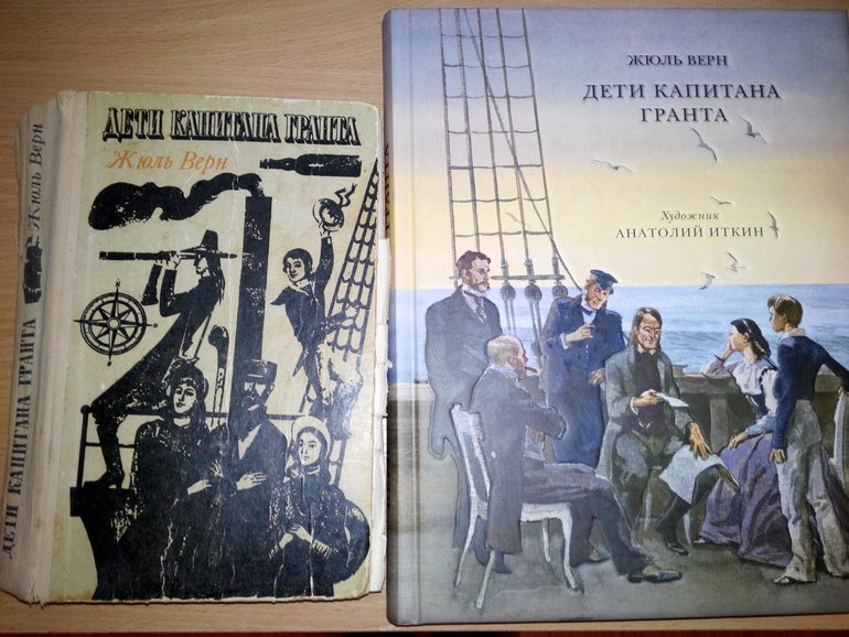 Я тоже скупила почти всю эту серию, книги роскошные...но вот какая мысля меня точит: они слишком дорогие, большие, тяжелые (вес ого-го), для коллекции и украшения библиотеки — самое оно, но для чтения ребенком 11-14 лет — совершенно непригодные. Ведь если книжка захватывает (а Жюль Верн не может не захватить), то читать её хочется все время: за обедом, на улице, в кровати. А такой фолиант (совр. издание) с собой особо не потаскаешь (надеюсь, вы не рассчитываете на то, что будете читать вместе с ребенком, рассматривая картинки).А вот ваша старая книжка имеет все шансы быть зачитанной еще больше))Так что весь вопрос, что какую именно функцию будет выполнять книга.