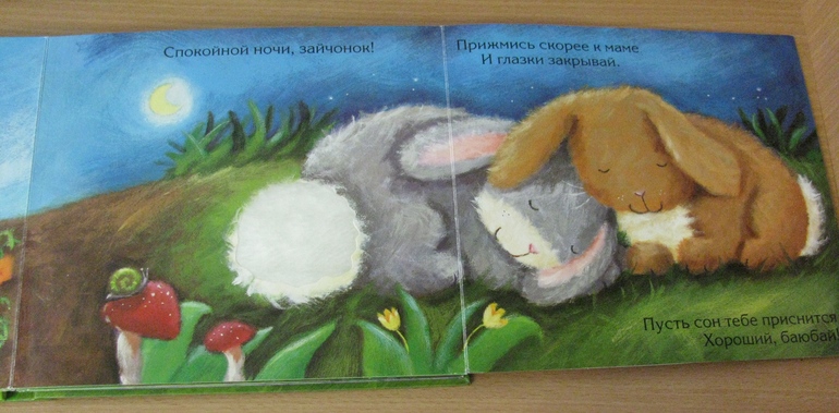 Еще одна серия , купила сразу три книжки, заказывала на сайте издательства. Очень милые иллюстрации и конечно тактильные вставки-удобные, большого размера, как и говорится в названии можно не только потрогать, но и погладить от ей души. Я правда ожидала что картон будет более плотным, а на самом деле он тоненький и его легко помять. Так что смотрим книжки только вместе. Сначала сын стеснялся гладить зверят, а потом освоился. В начале ему больше всех понравилась книга про медвежат (Миша родственников узнал :)), затем полюбил и другие книги из серии. Текста конечно очень мало, но на то они и интерактивные книжки-игрушки.