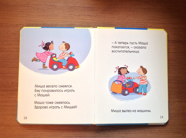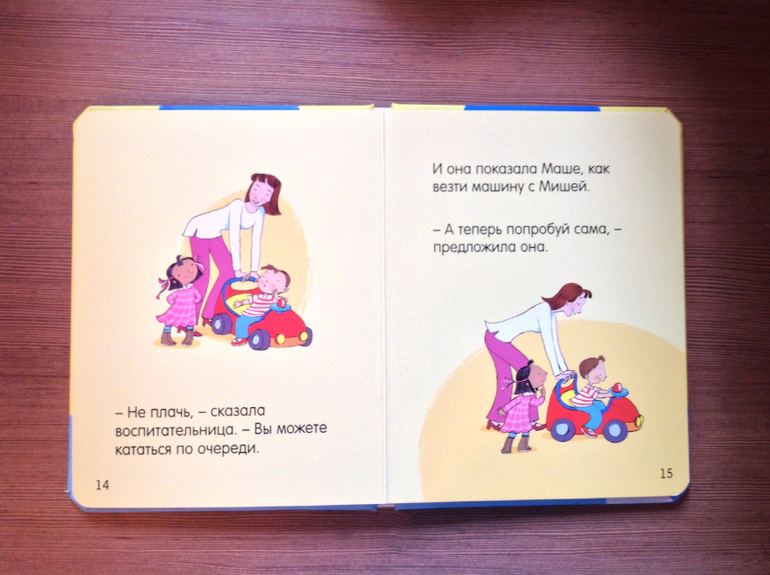 Вот такую книгу о ситуации дележа игрушки в детском саду мне предложила библиотекарь. Вернее сказать, она предложила взять мне всю серию про Машу и Мишу, но я решила ограничиться одной и правильно сделала, так как Даня уже из этой книги вырос- прочитали за пол минуты, обсудили и забыли!)